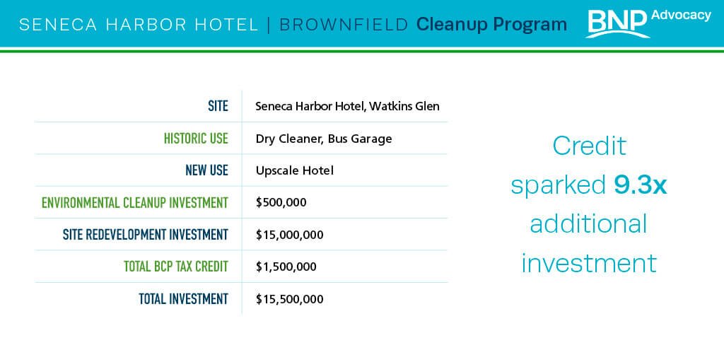 BCP stimulates private investment to clean sites that would otherwise remain contaminated and underutilized. Through the BCP, developers willing to incur the cost of cleaning up a Brownfield site receive a tax credit to help finance environmental remediation and redevelopment. The BCP stimulates private investment by making cost-prohibitive projects possible.